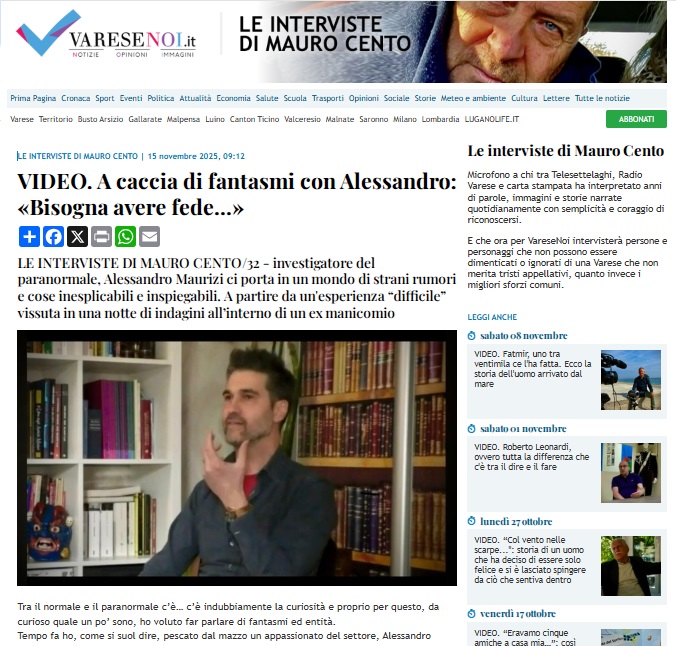 In the newspaper La Prealpina, where Alessandro Maurizi and Andreas Moeller's research in the paranormal are described, Alessandro Maurizi currently of the X Investigation, in particular that carried out at the "old cemetery of Viggiù" Italy.